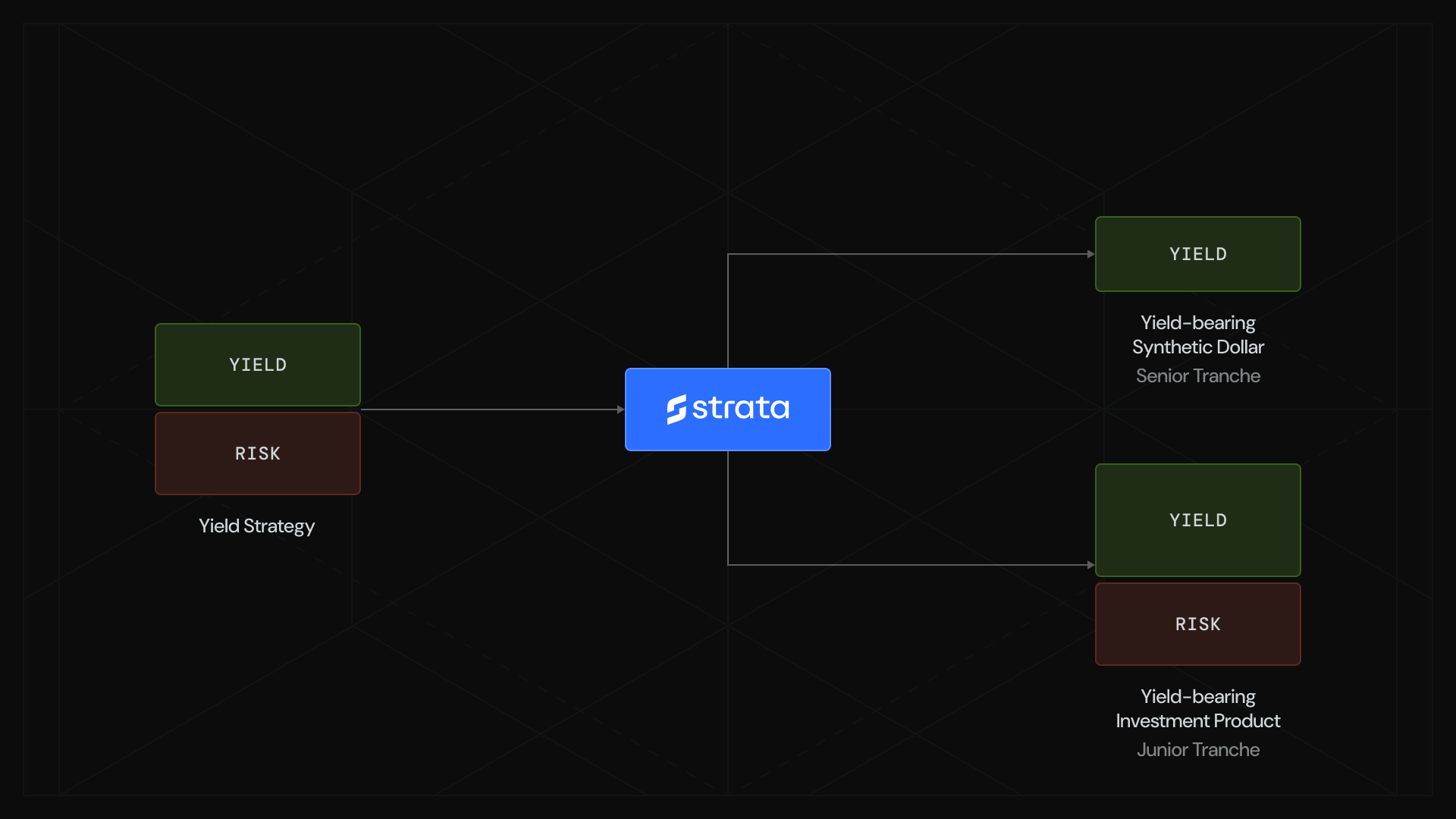 Strata is a generalized risk-tranching protocol that brings structured yield products to any on-chain or off-chain yield strategy by splitting yield into two tokenized risk-based tranches, each tailored to distinct risk–reward profiles.